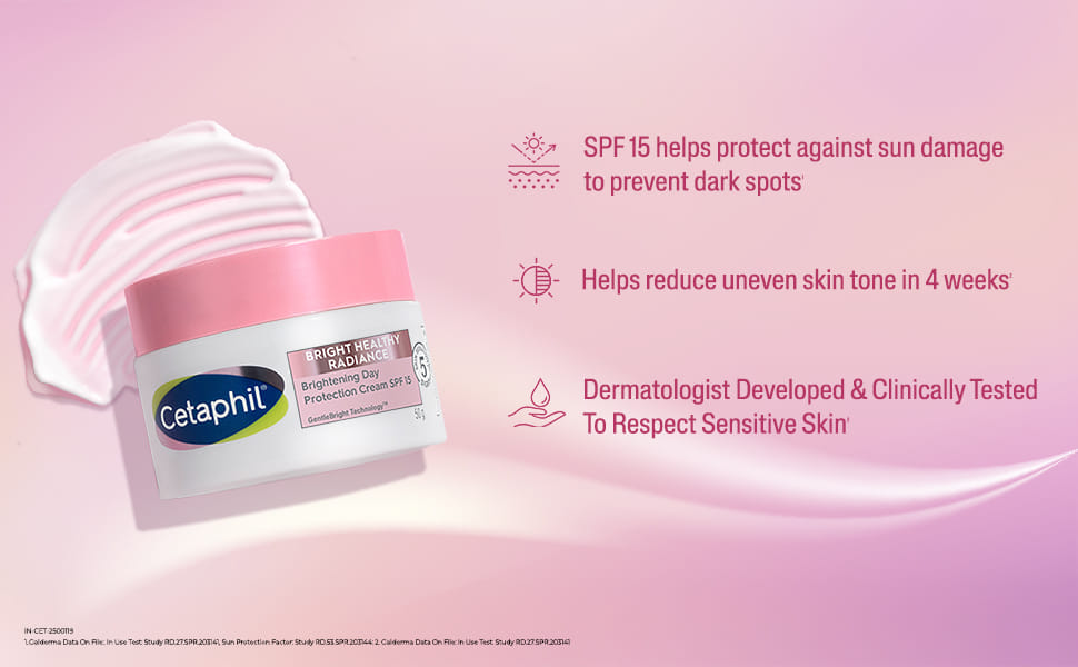 Cetaphil Bright Healthy Radiance Brightening Day Protection Cream SPF 15 visibly reduces dark spots and uneven skin tone in four weeks. This lightweight, dermatologist-recommended cream provides broad-spectrum SPF 15 sun protection and all-day hydration for a radiant complexion.