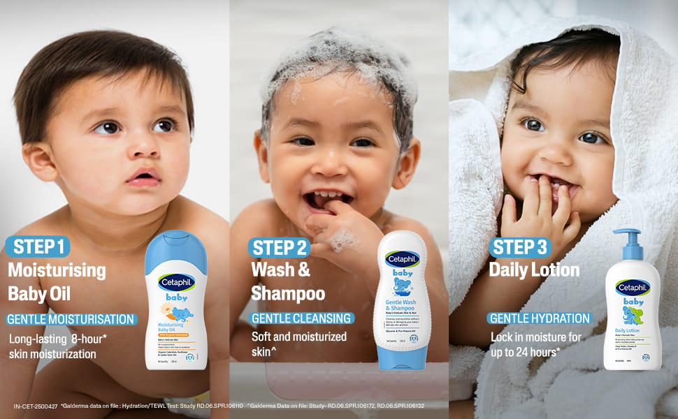Cetaphil Baby Gentle Wash & Shampoo is a 2-in-1 cleanser, delicately formulated to gently cleanse your baby's delicate skin and hair without drying. Enriched with glycerin and panthenol, it nourishes and moisturizes, promoting healthy skin and scalp development. This tear-free, hypoallergenic formula is free from parabens, mineral oil, alcohol, and soap, making it ideal for even the most sensitive newborns. Dermatologist-tested and pH balanced for gentle everyday use.